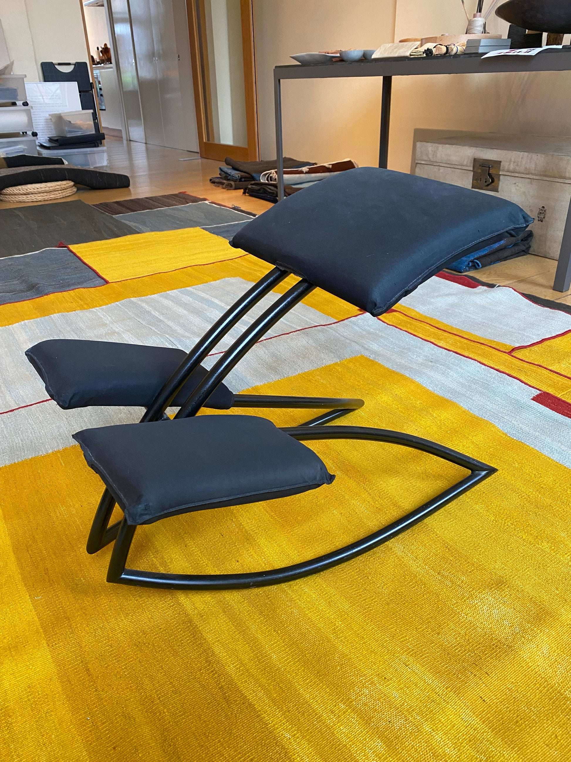 An iconic design by Phillipe Stark the Mister Bills Chair in black metal frame and black upholstery.