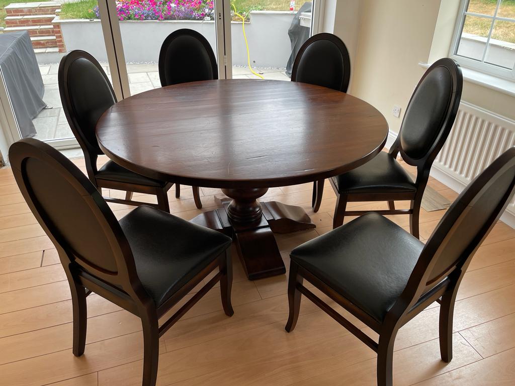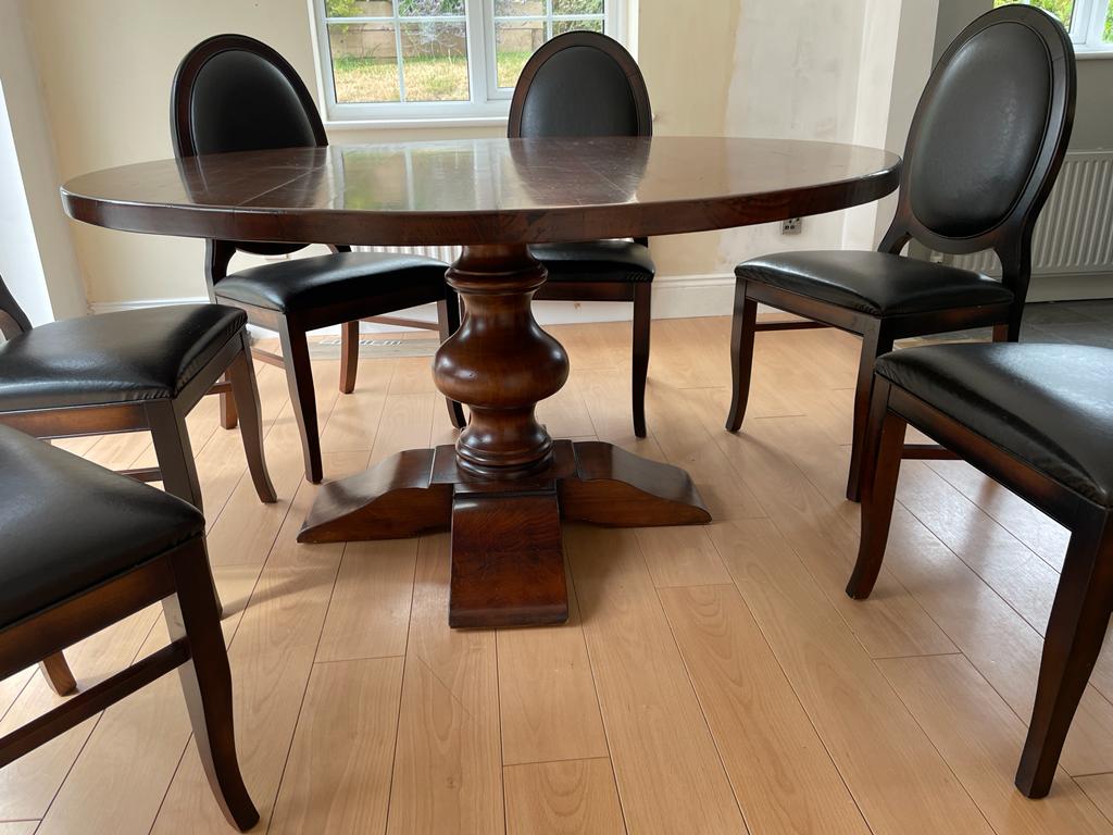 This stunning Arhaus 6 seater Dining set is meticulously brought to life by Italian craftsmen constructing every piece from solid wood, imparting an elegant Old World aesthetic. Striking details are artfully hand-sculpted, and dramatic multi-tonal patinas are hand-painted with rich tones. Arhaus' antiqued finishes are carefully distressed for a naturally aged appearance and protected to sustain their beauty for ages.